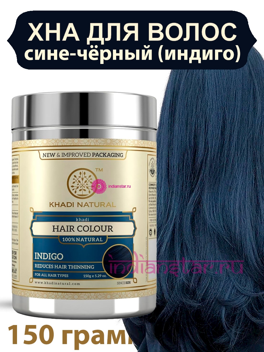 Описание товара хна для волос Khadi цвет Индиго (Сине-Чёрный), 150 грамм