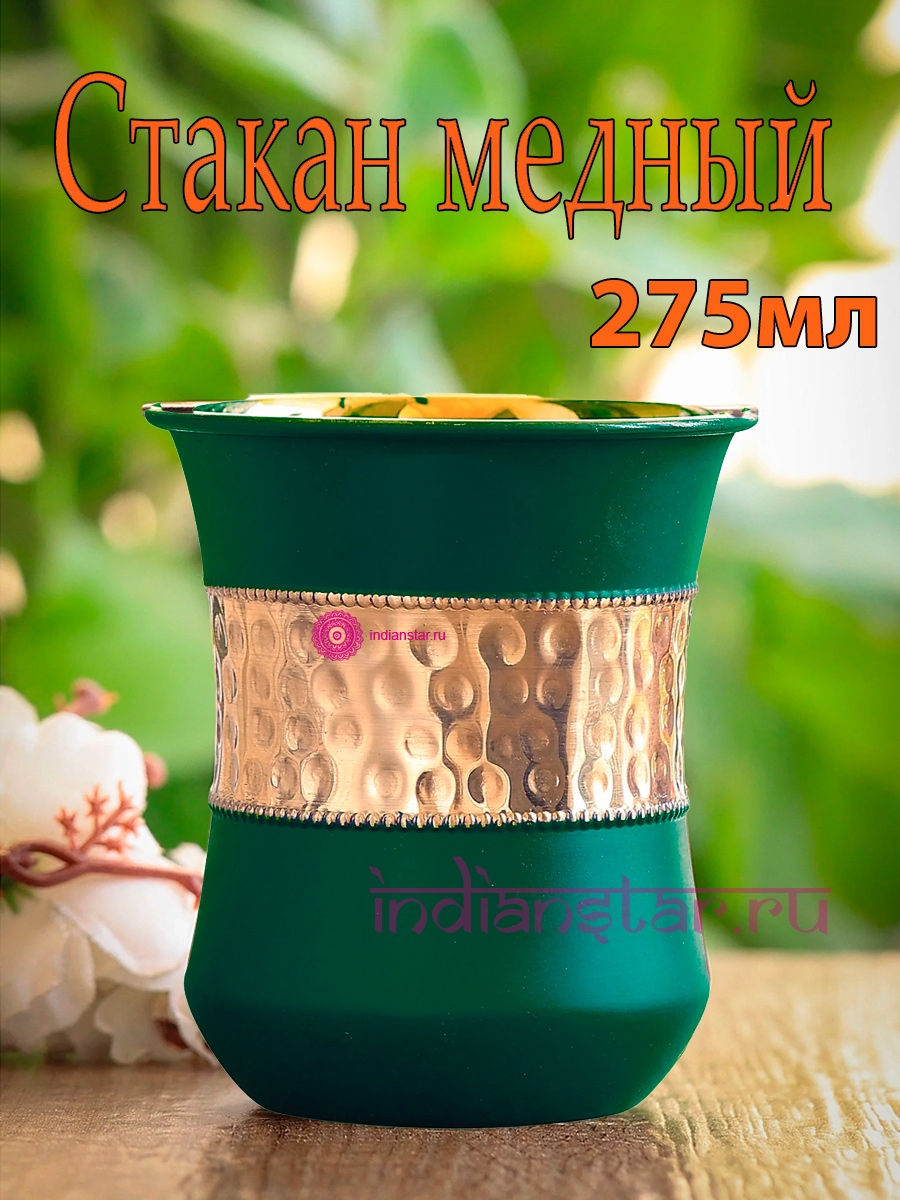 Медный стакан для воды Королевский Зелёный, 275 мл