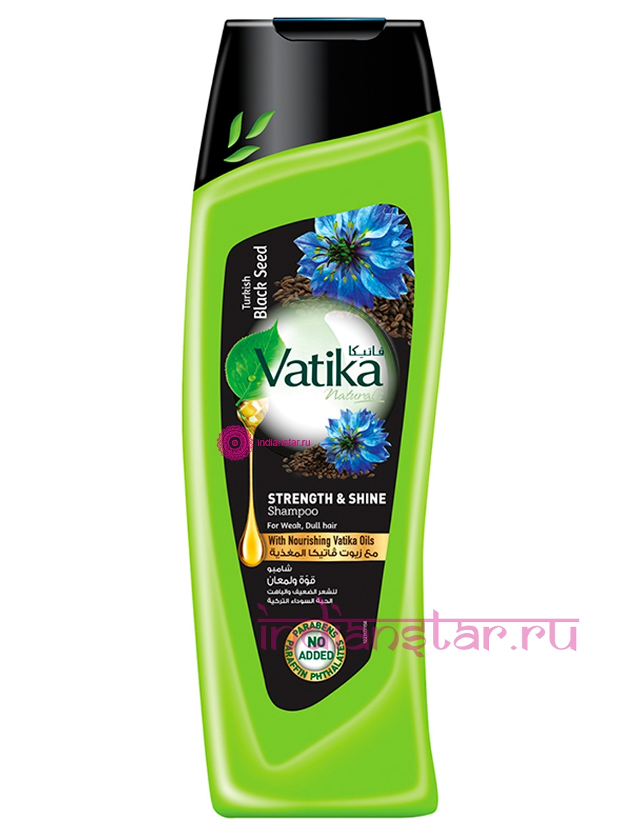 шампунь Дабур Ватика с экстрактом семян чёрного тмина "Сила и Блеск", шампунь придаст силы ослабленным волосам, вернёт им здоровый и сияющий вид.
