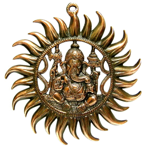 панно Шри Ганеш И Ом Сияющий, металл 52 см