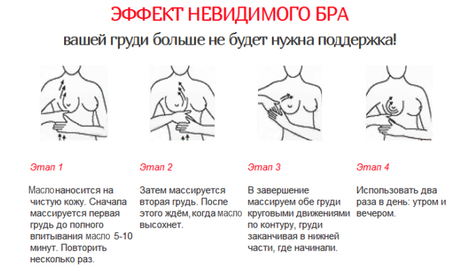 - подтягивает, придаёт упругость и правильные контуры груди;