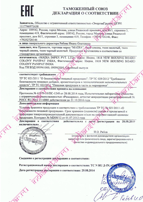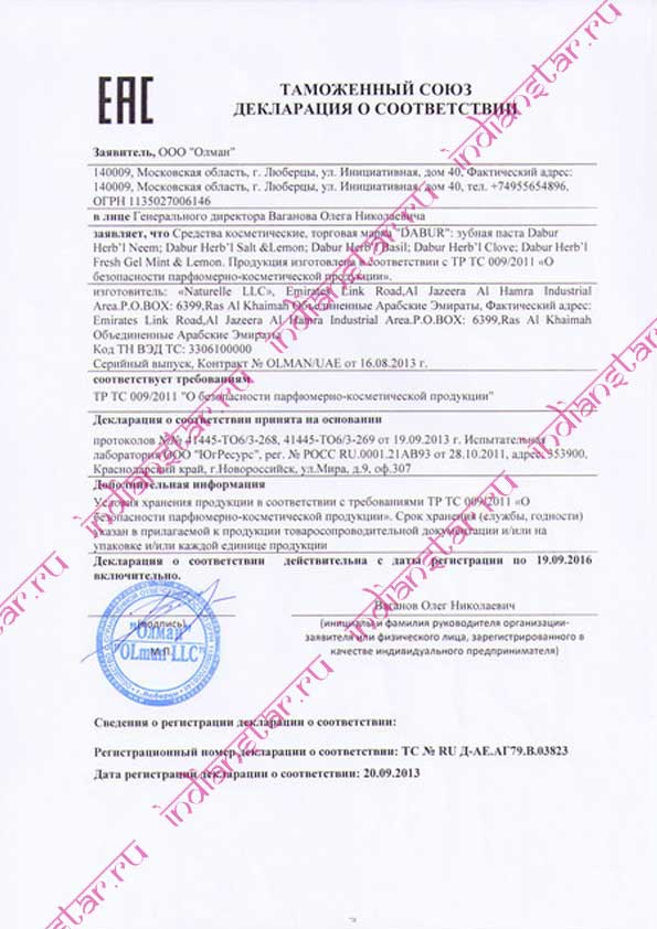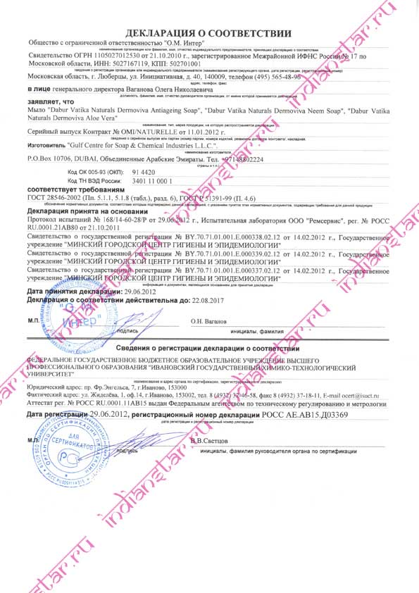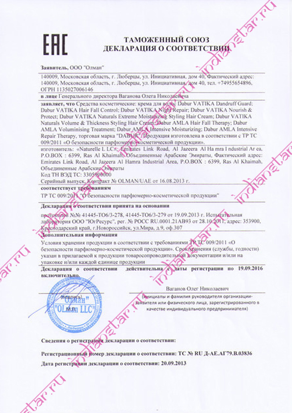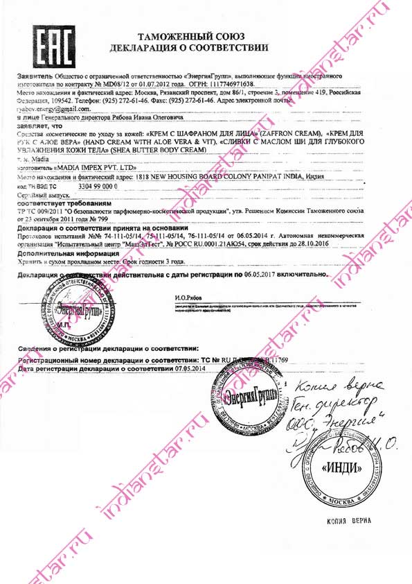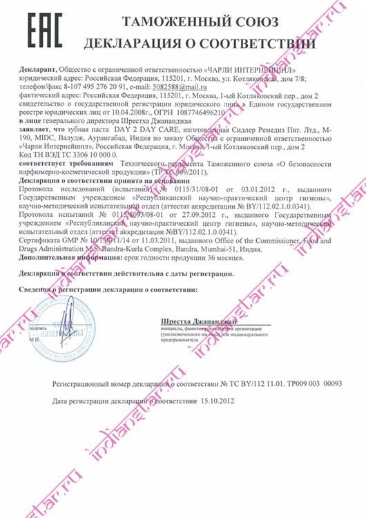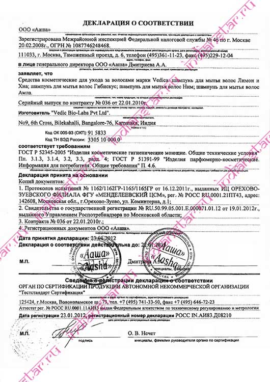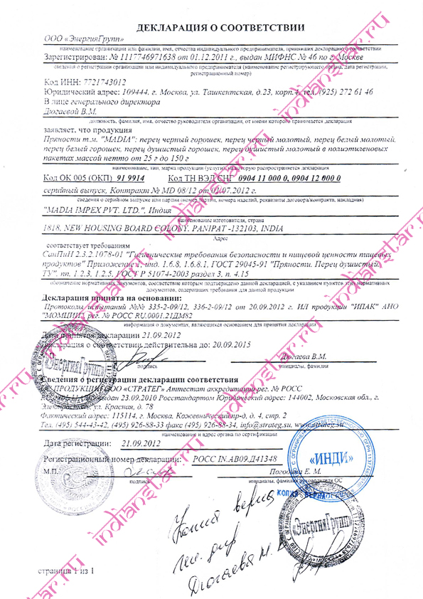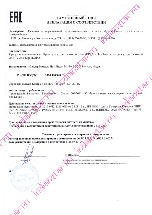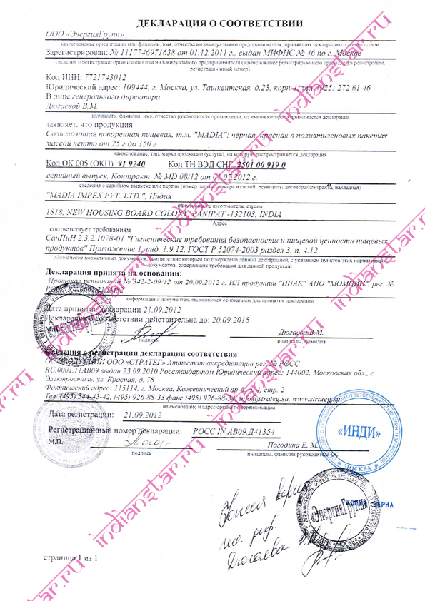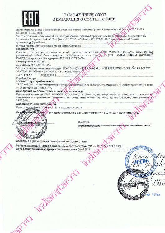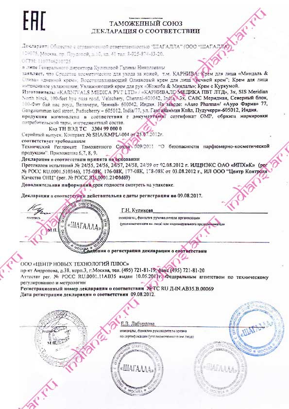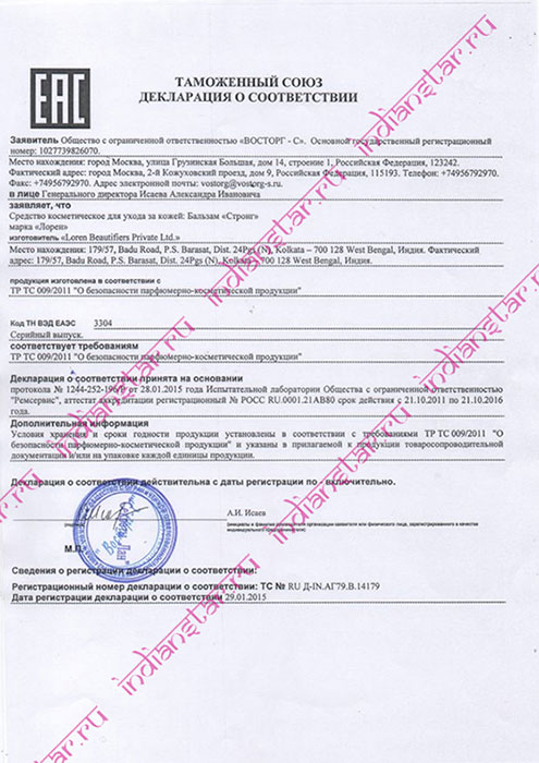 Сертификаты международных стандартов получают и хранят у себя производители продукции в Индии, информацию о наличии таких сертификатов можно найти информацию на упаковке товара. Российские сертификаты представлены на данной странице.