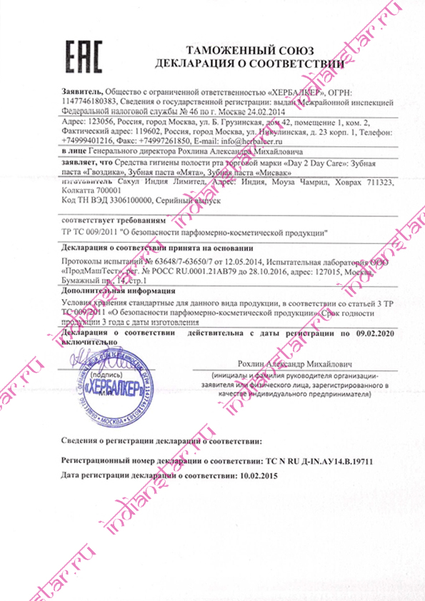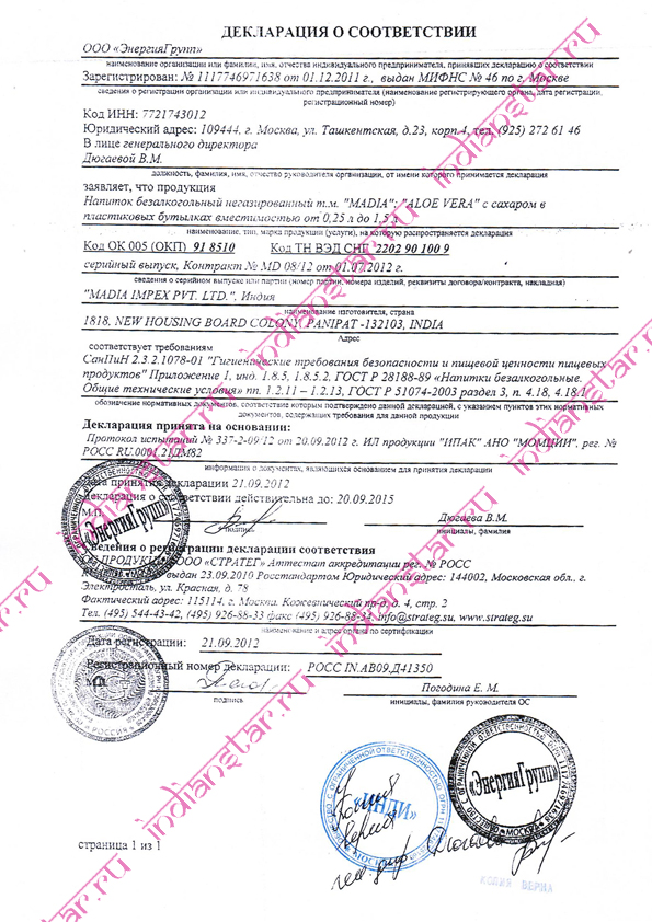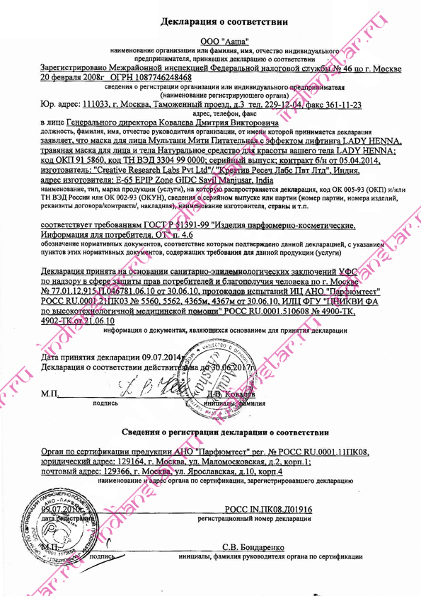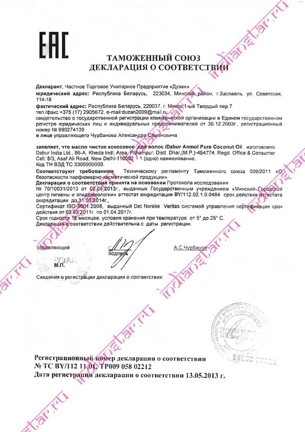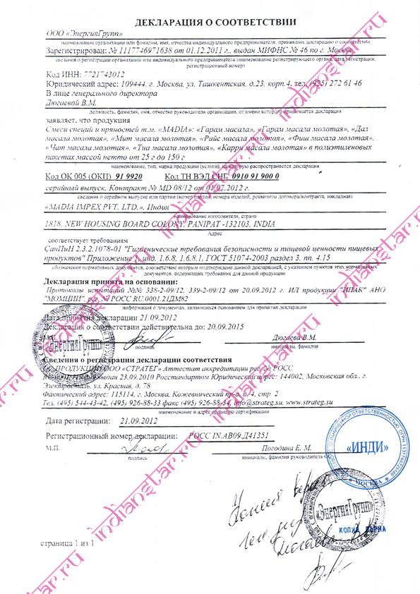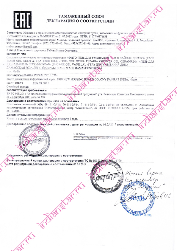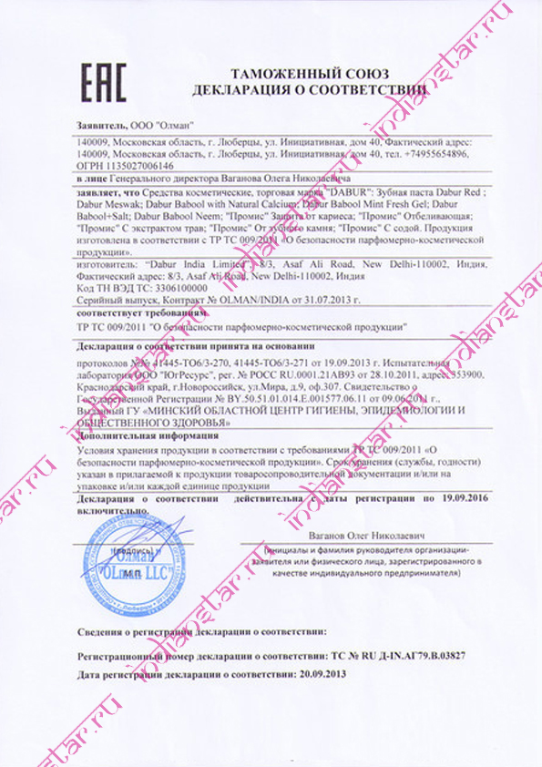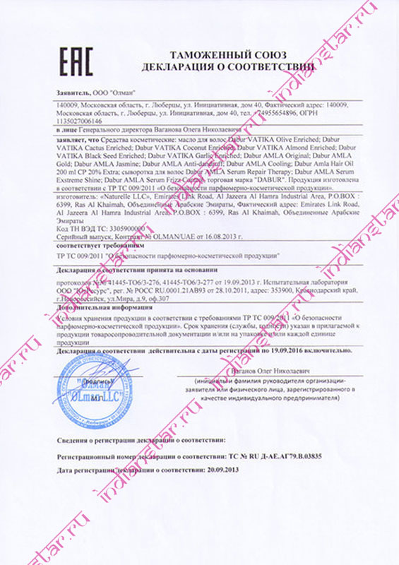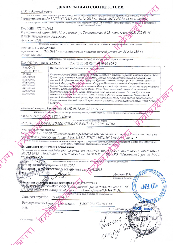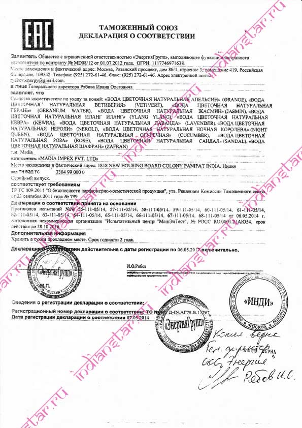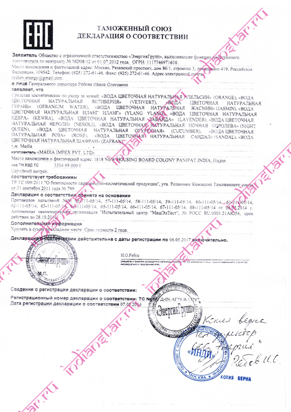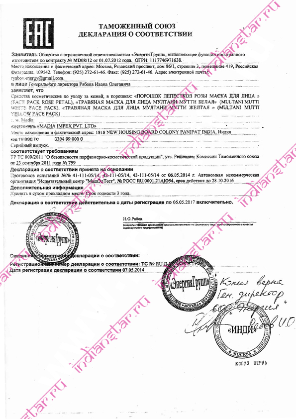 Сертификаты международных стандартов получают и хранят у себя производители продукции в Индии, информацию о наличии таких сертификатов можно найти информацию на упаковке товара. Российские сертификаты представлены на данной странице.