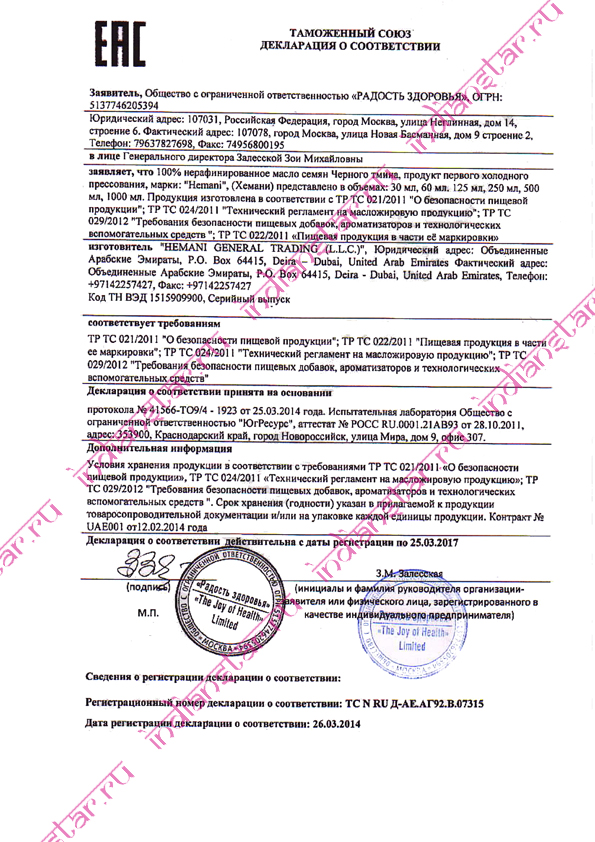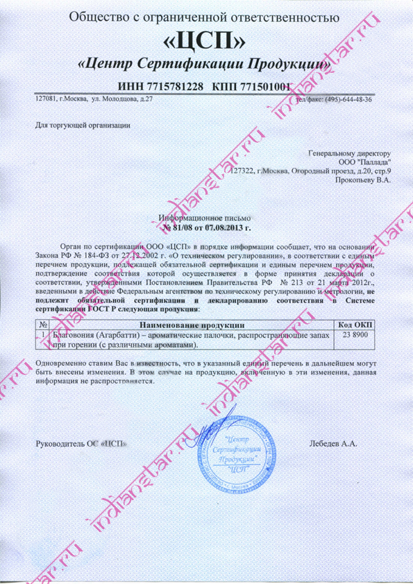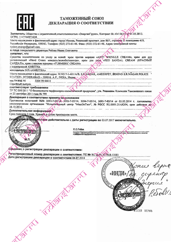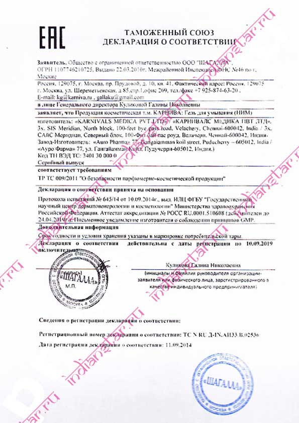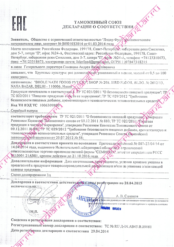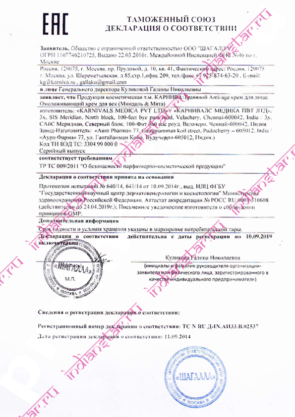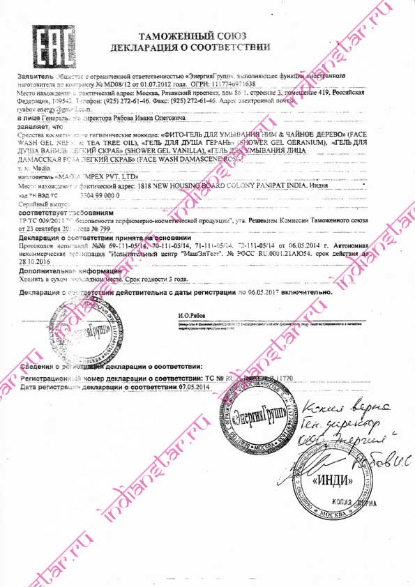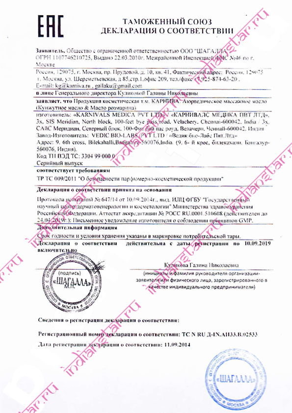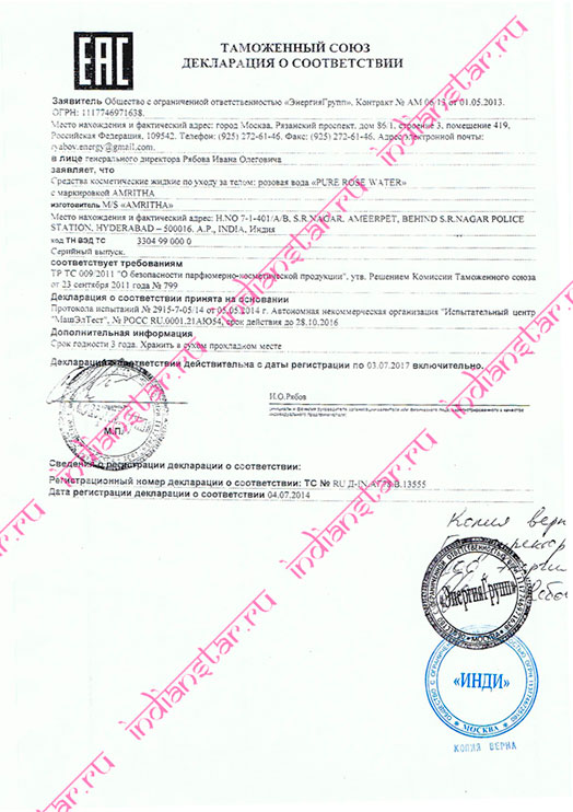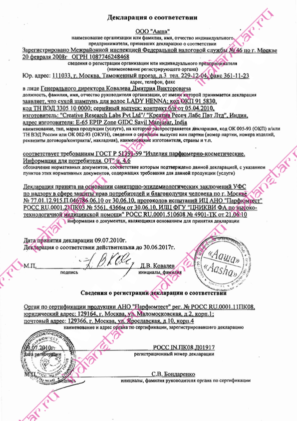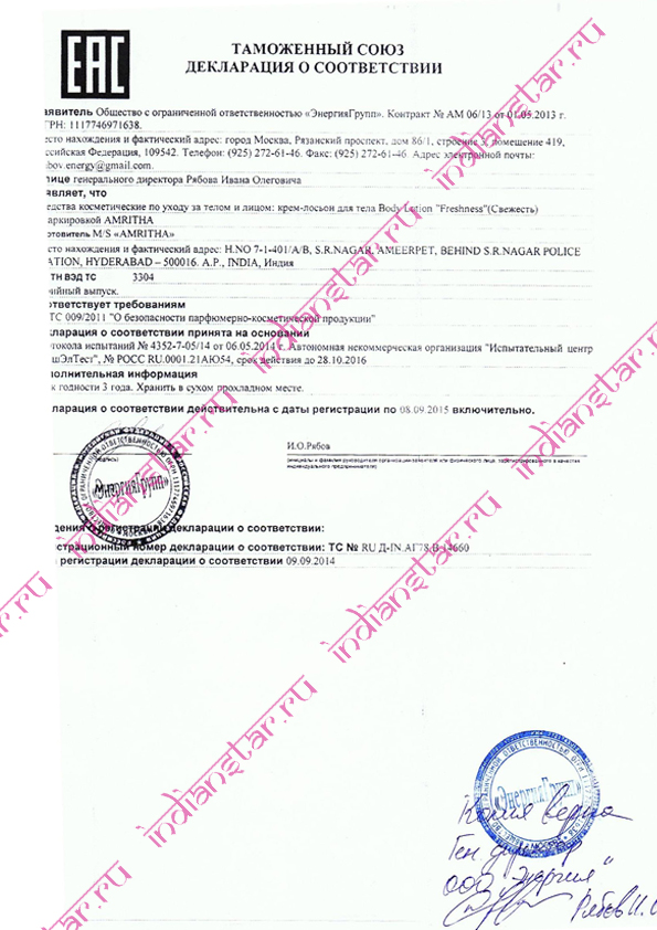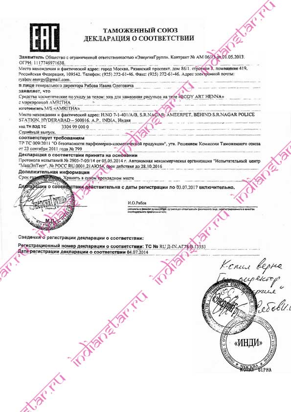 Сертификаты международных стандартов получают и хранят у себя производители продукции в Индии, информацию о наличии таких сертификатов можно найти информацию на упаковке товара. Российские сертификаты представлены на данной странице.