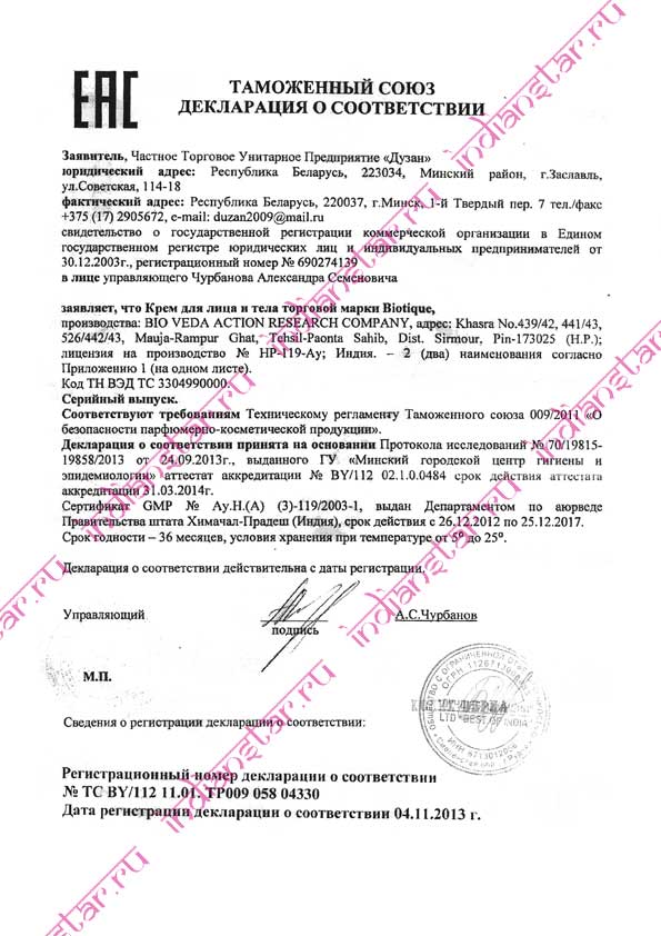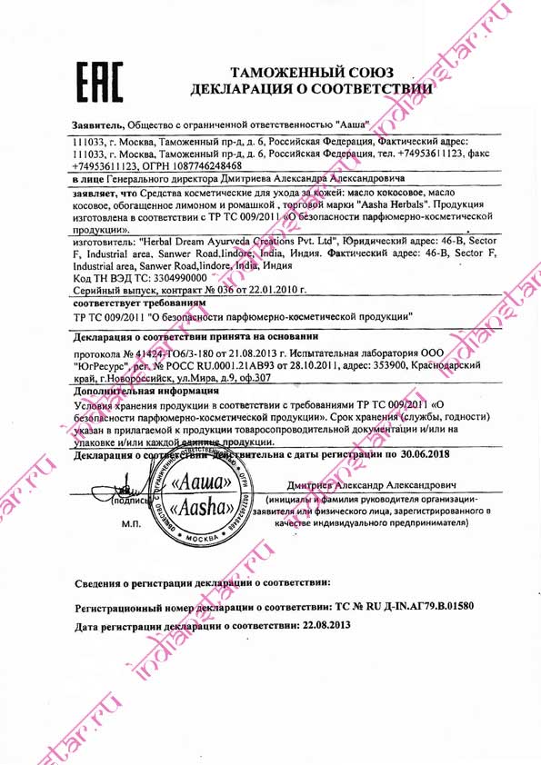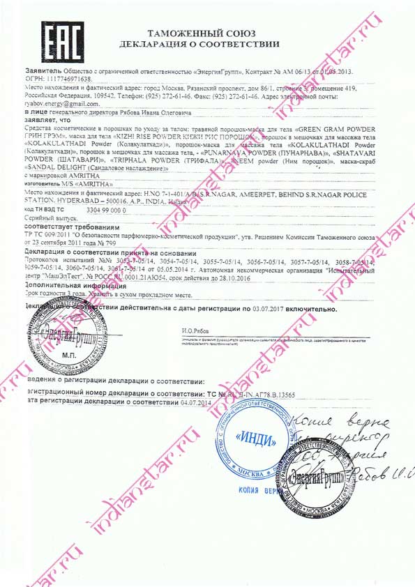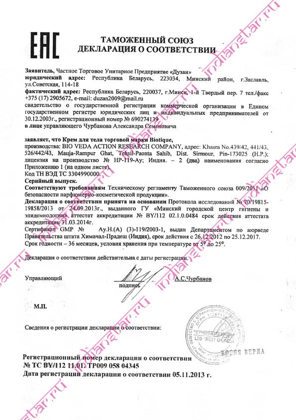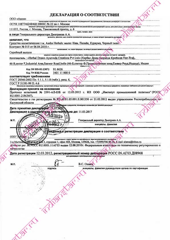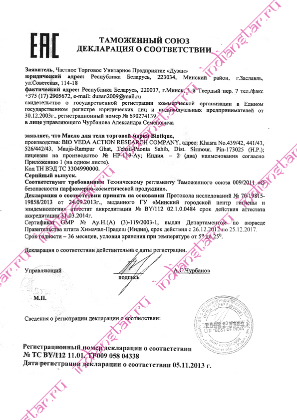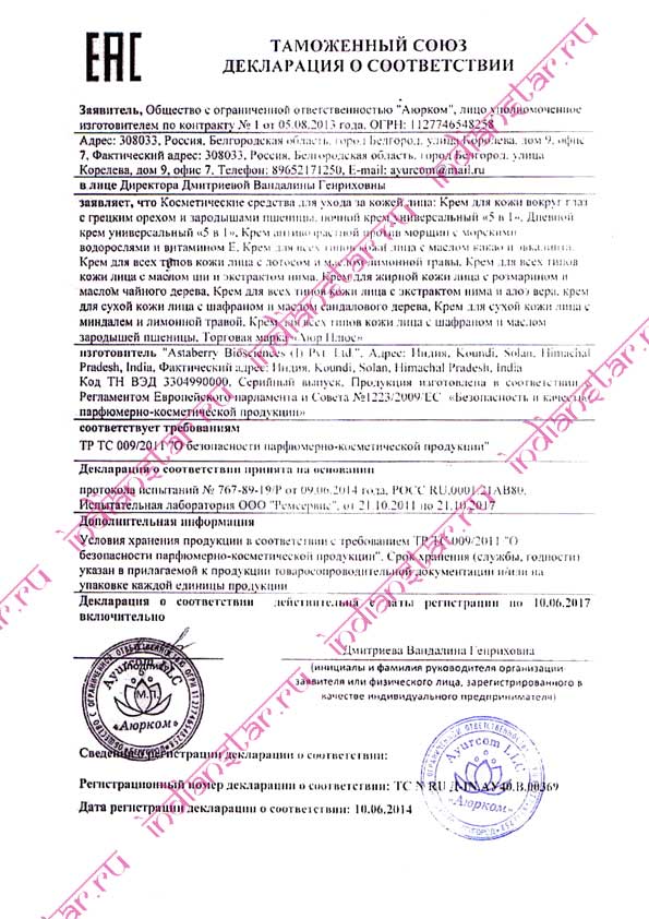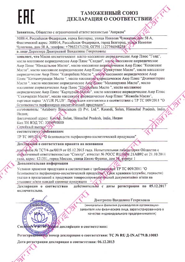 Все аюрведические средства, представленные в нашем аюрведа магазине официально продаются в государственных аптеках Индии. Они имеют сертификаты международных и индийских стандартов и не могут реализовываться без соответствующих документов.