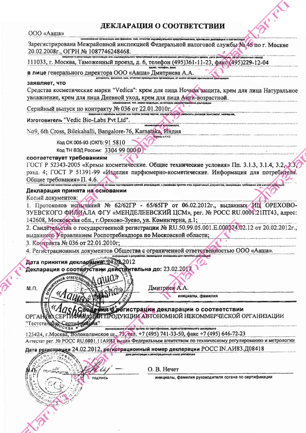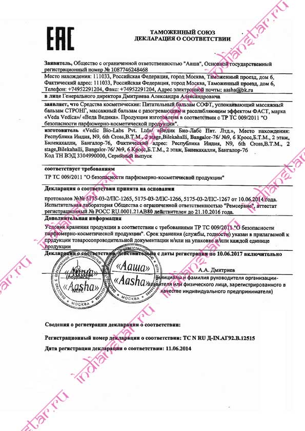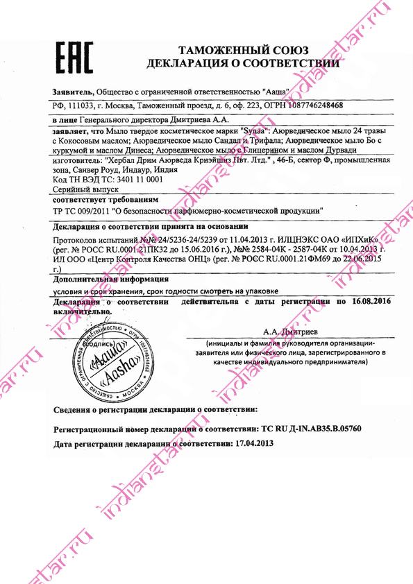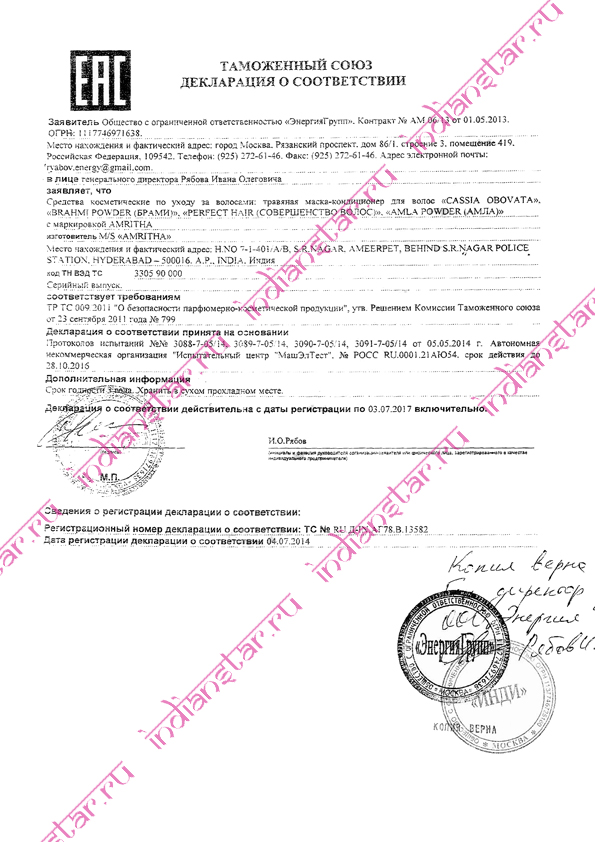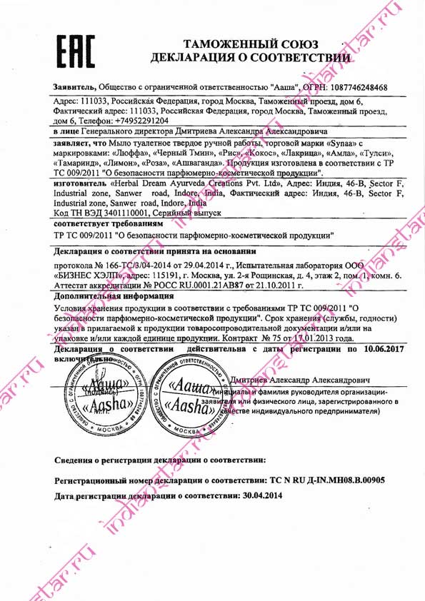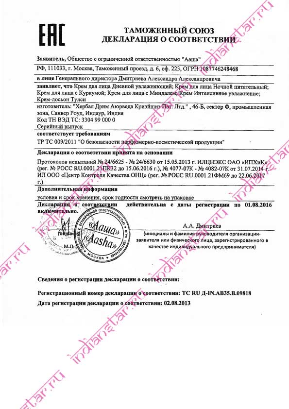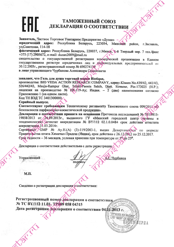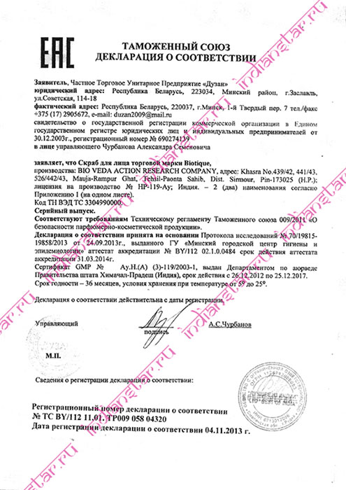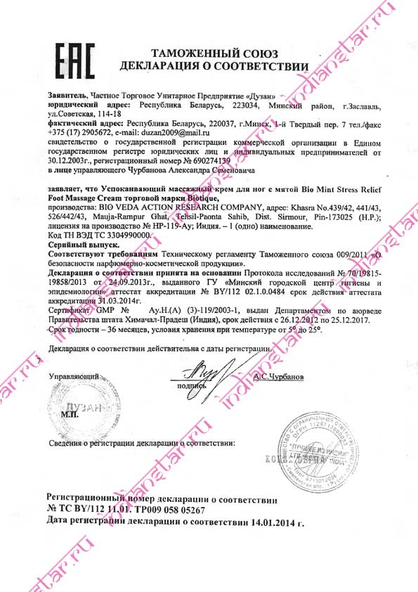 Все аюрведические средства, представленные в нашем аюрведа магазине официально продаются в государственных аптеках Индии. Они имеют сертификаты международных и индийских стандартов и не могут реализовываться без соответствующих документов.