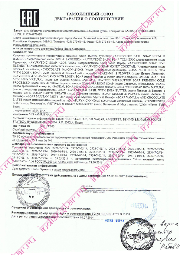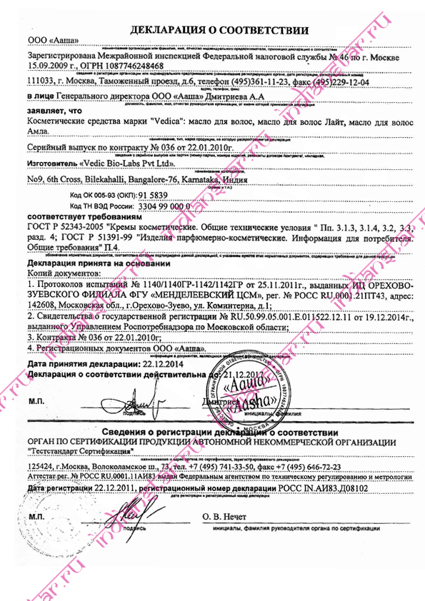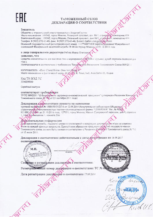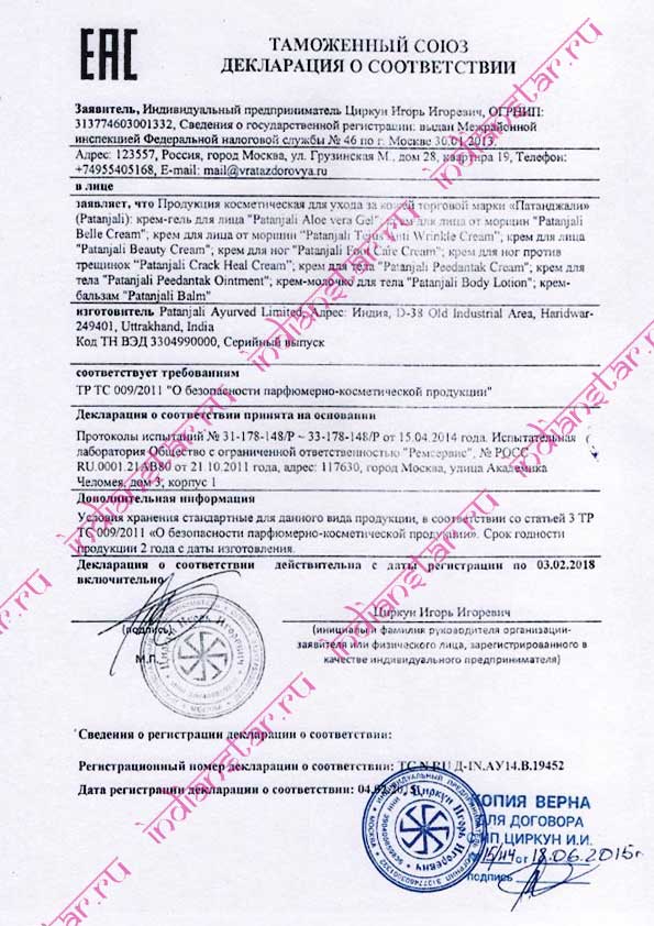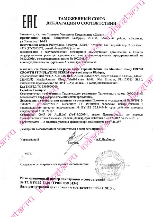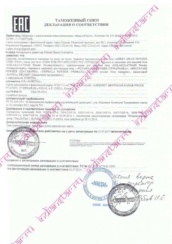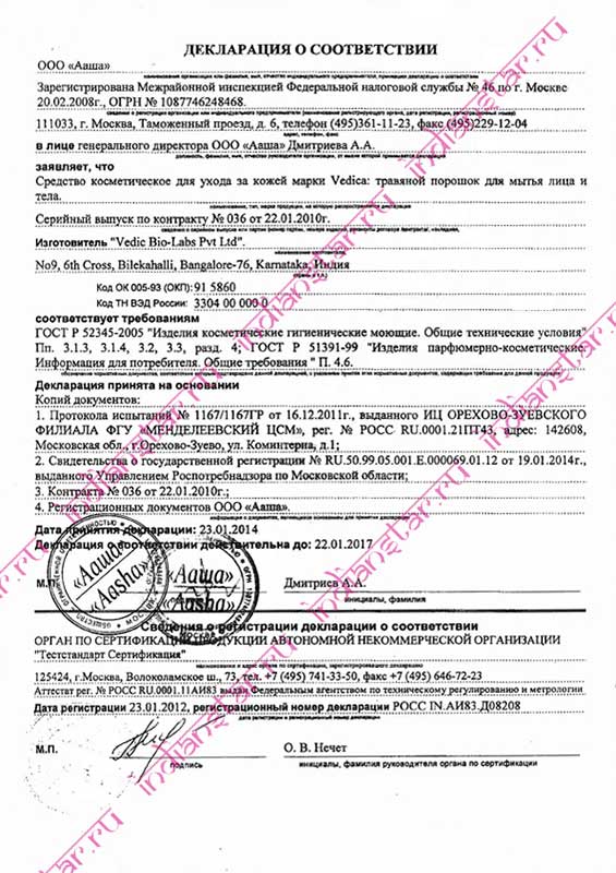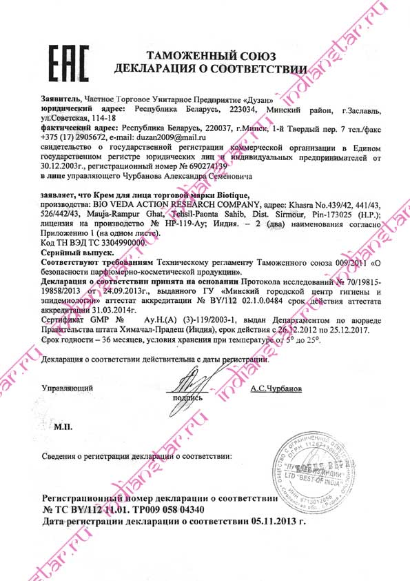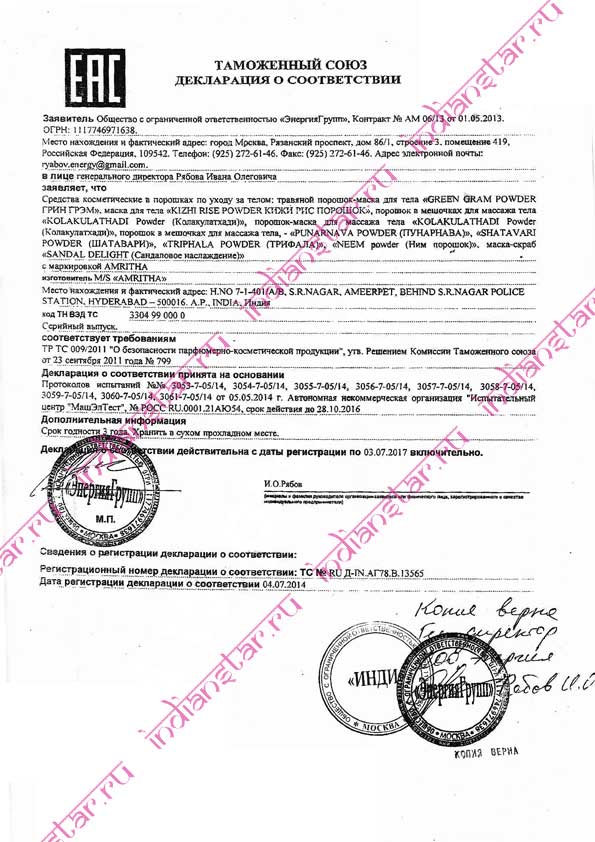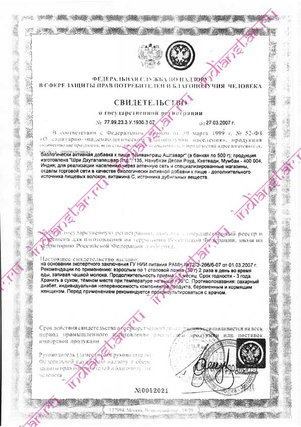 Наш магазин продаёт только натуральные и оригинальные аюрведические препараты, мы не занимаемся продажей подделок и не качественного товара. У препаратов имеются сертификаты международных стандартов GMP и Российские декларации соответствия и ЕАС.