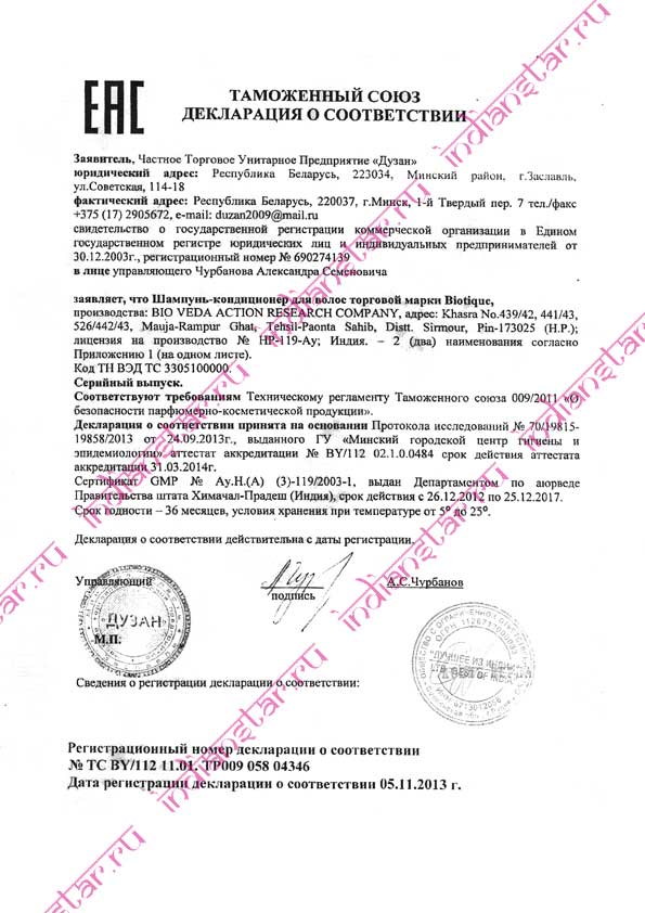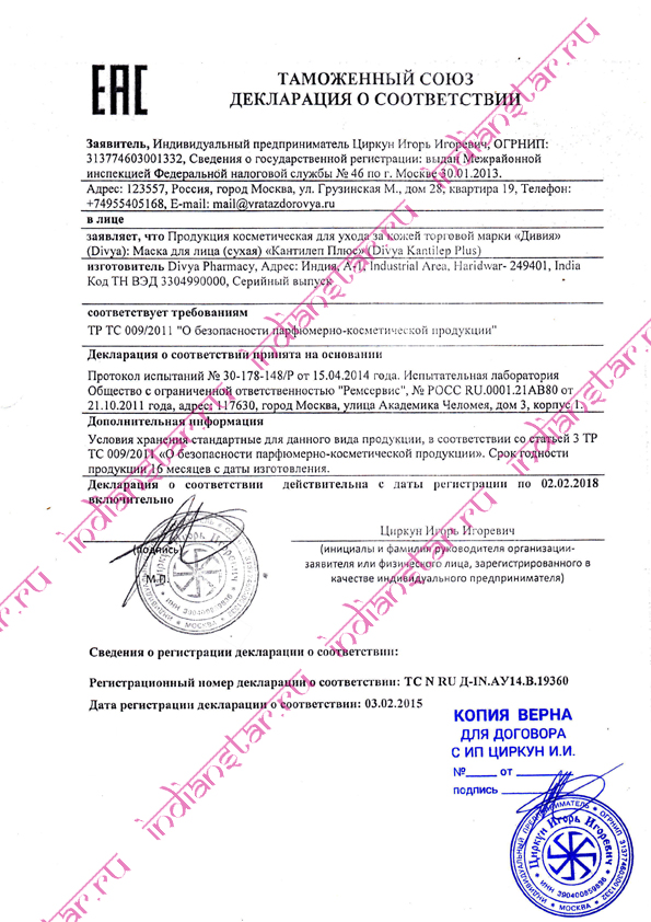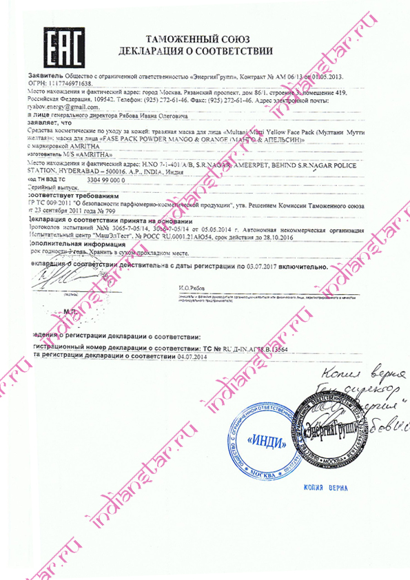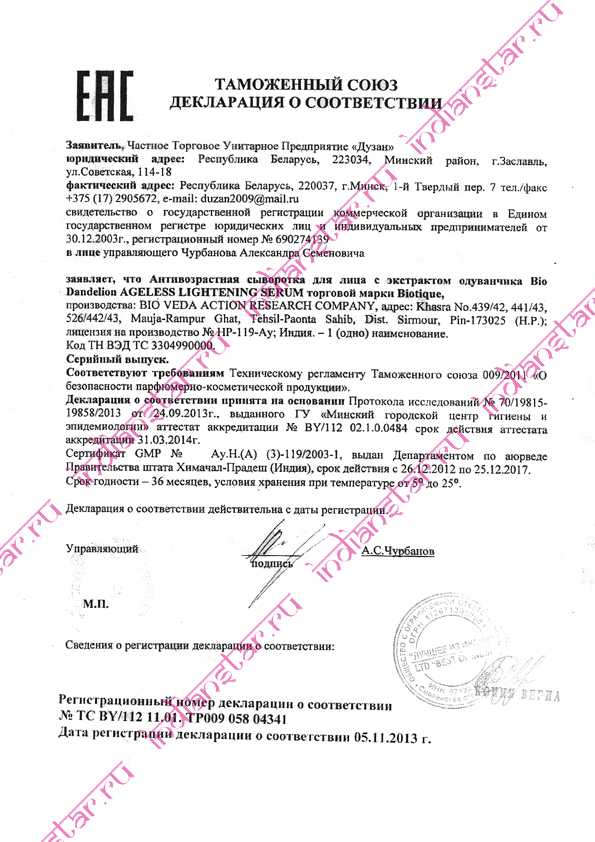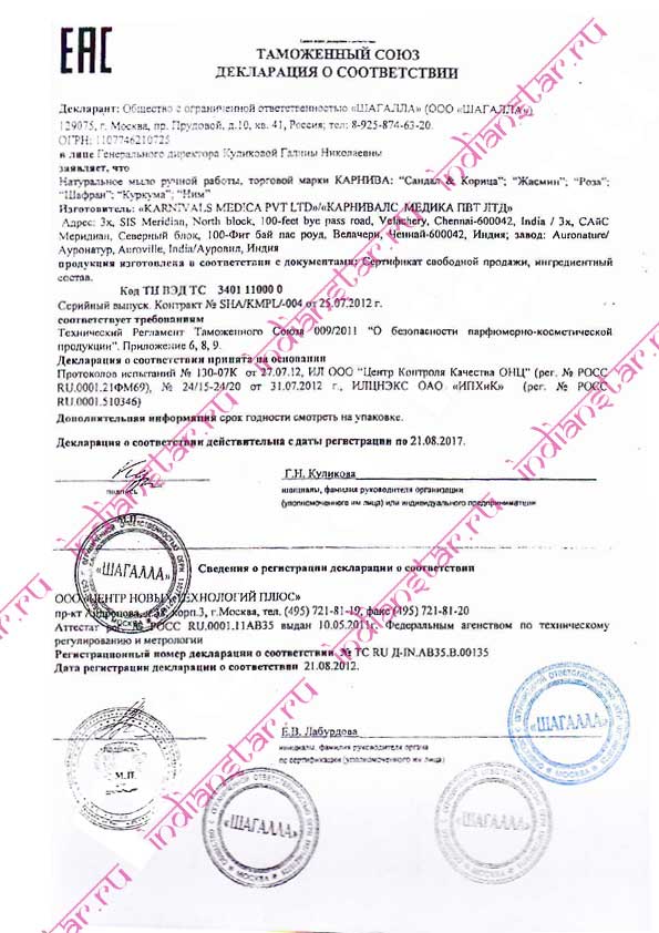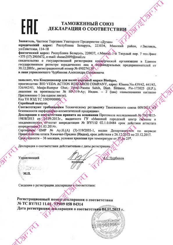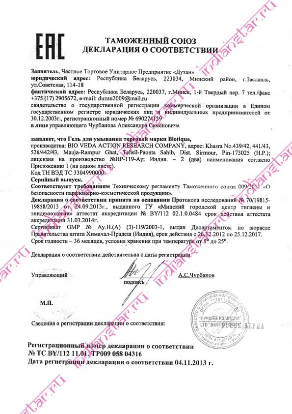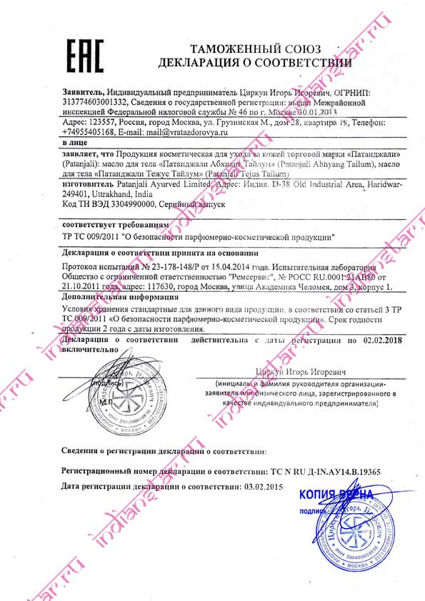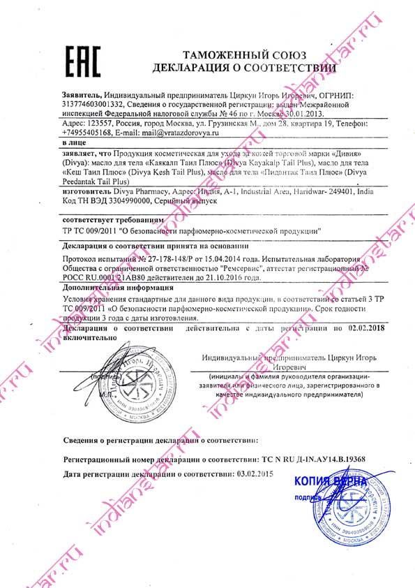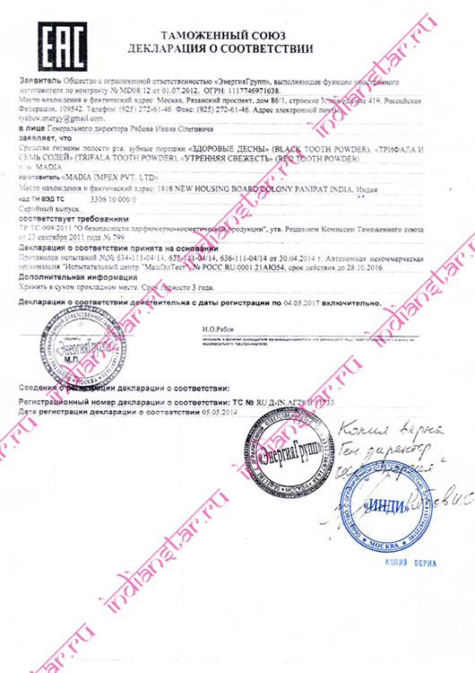 Наш магазин продаёт только натуральные и оригинальные аюрведические препараты, мы не занимаемся продажей подделок и не качественного товара. У препаратов имеются сертификаты международных стандартов GMP и Российские декларации соответствия и ЕАС.