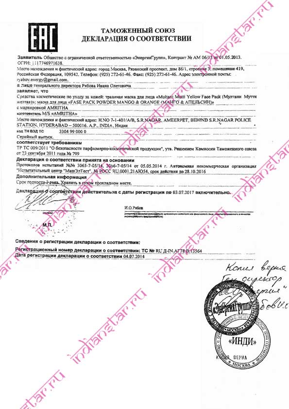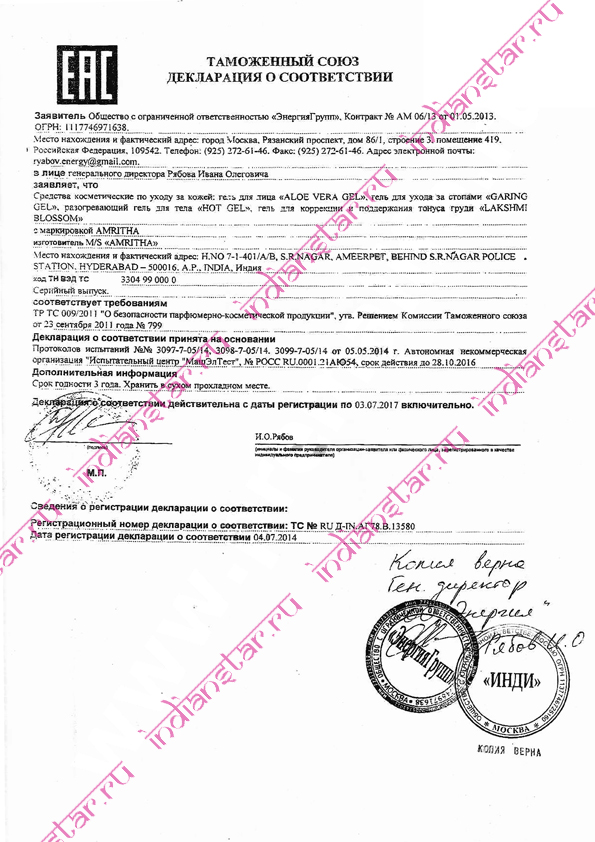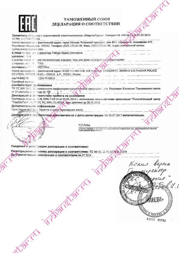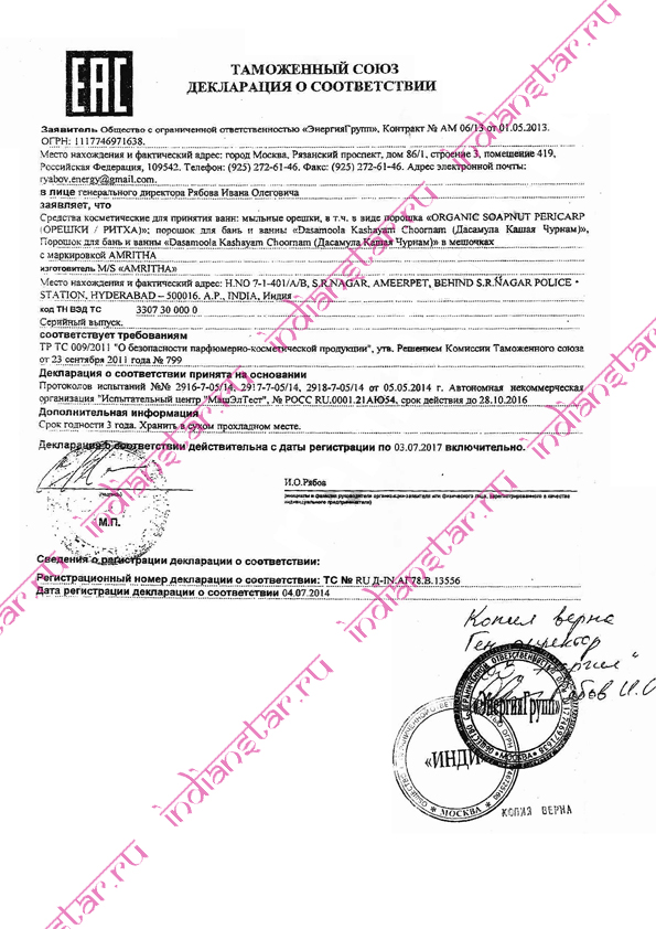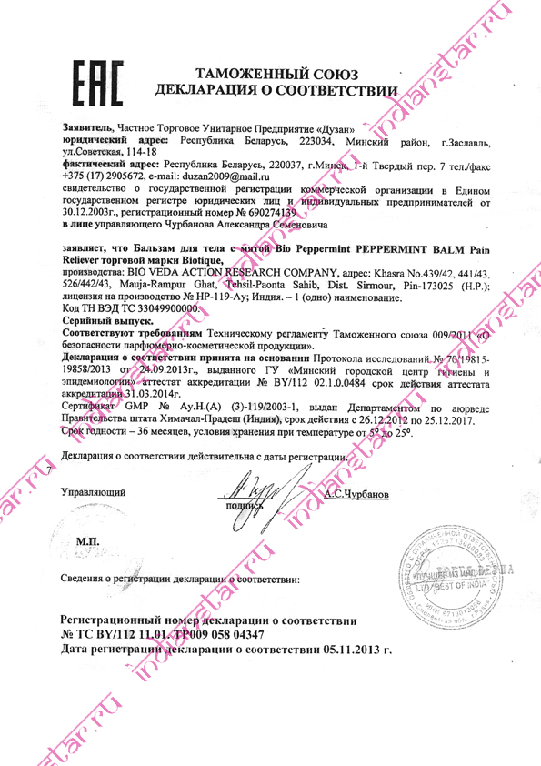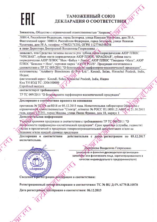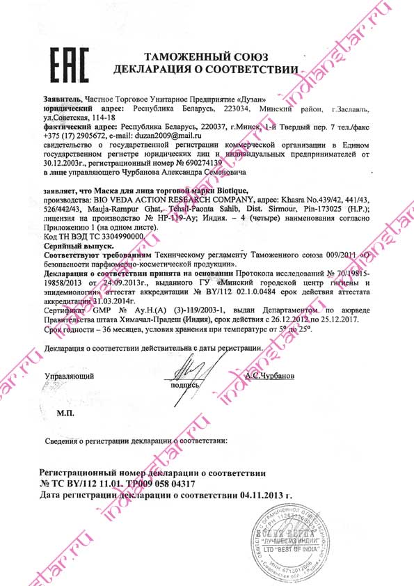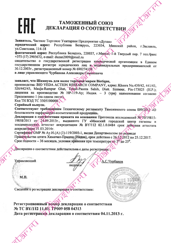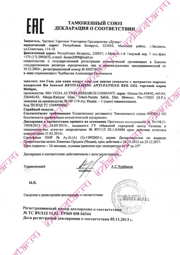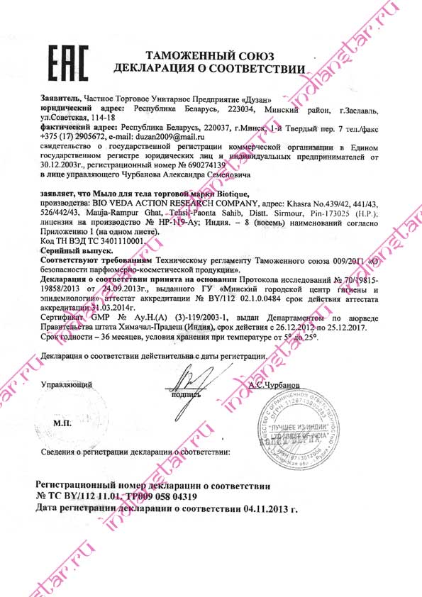Наш магазин продаёт только натуральные и оригинальные аюрведические препараты, мы не занимаемся продажей подделок и не качественного товара. У препаратов имеются сертификаты международных стандартов GMP и Российские декларации соответствия и ЕАС.
