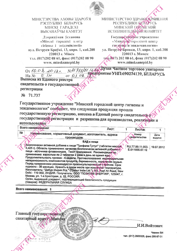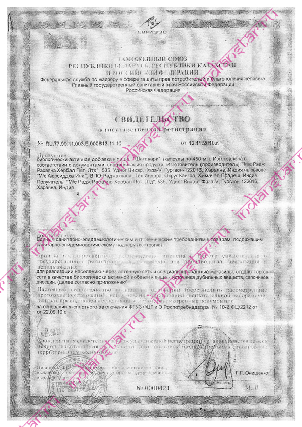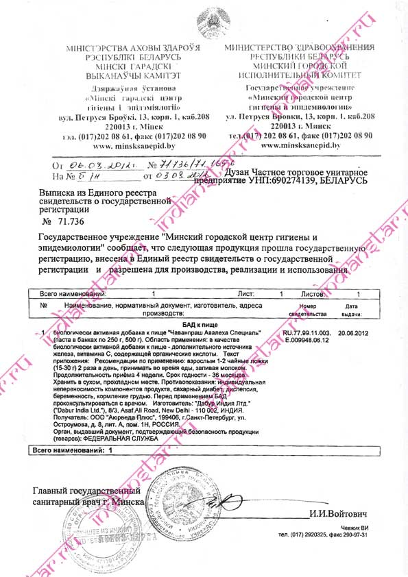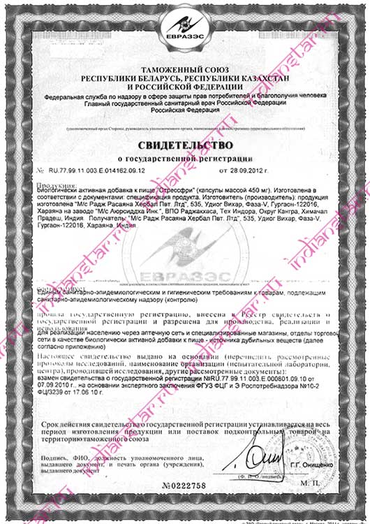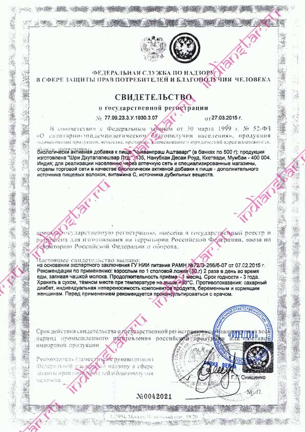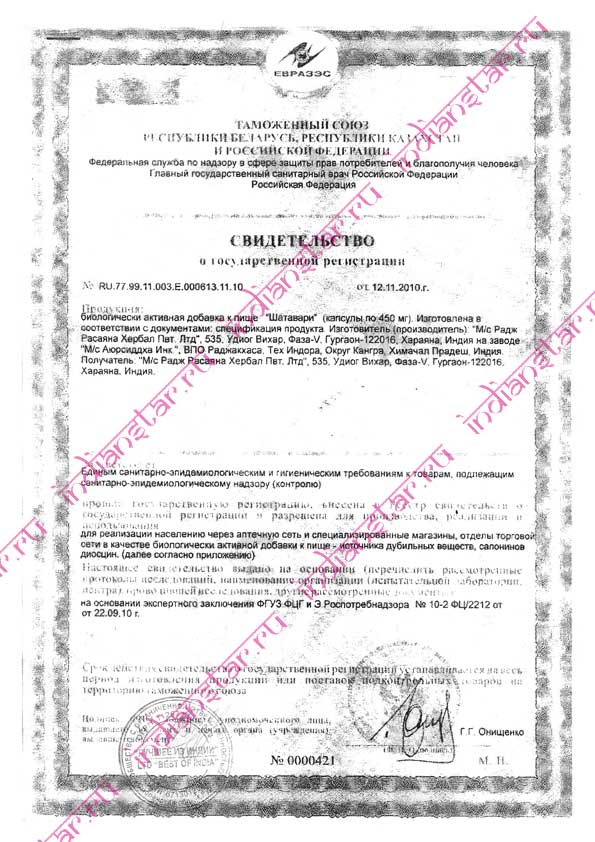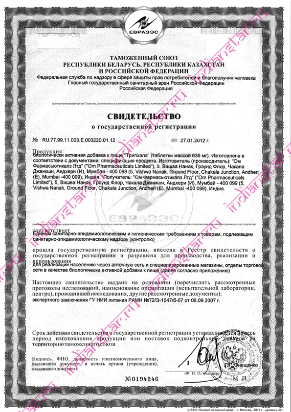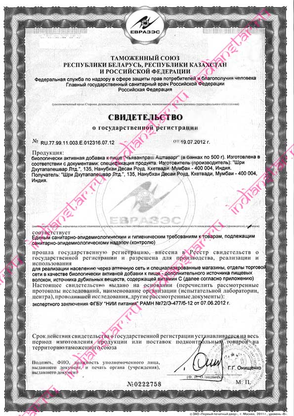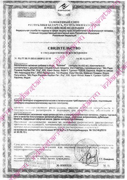 В этом разделе представлены сертификаты и заключения санитарно-эпидемиологических и гигиенических требований безопасности на аюрведические препараты и БАДы представленные в нашем интернет магазине индийских товаров.